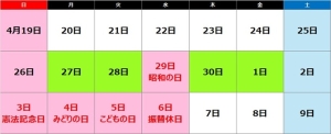 - 5連休(基本): 5月3日(日・祝)〜5月6日(水・振休)